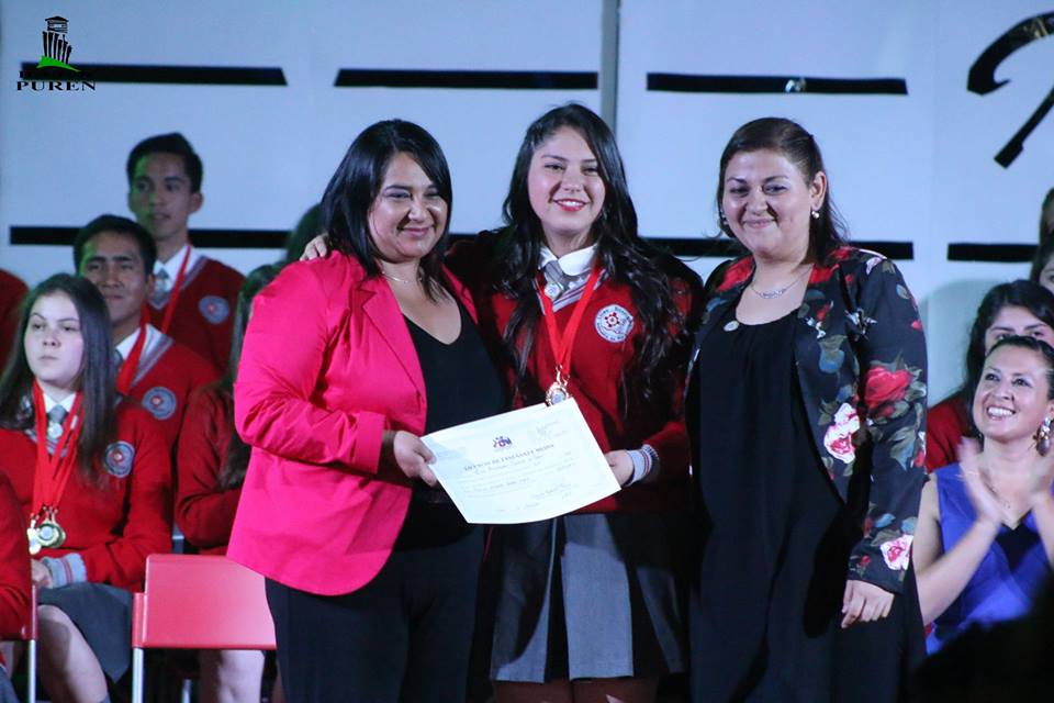 Los logros académicos siempre son reconocidos y más aún el mejor promedio a través de los cuatro años de enseñanza media, es así como la alumna Catalina Vidal obtiene este reconocimiento, otorgado por la Ilustre Municipalidad de Purén, quien dirige el alcalde Jorge Rivera Leal, por ser la mejor promoción año 2013-2016, con un promedio de 6,85, “Este promedio es fruto de su trabajo permanente durante estos 4 años”, palabras con las cuales los presentadores alagaron el esfuerza de la alumna como también el de la familia.